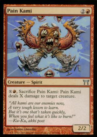 [X][R], sacrifice Pain Kami: Pain Kami deals X damage to target creature.