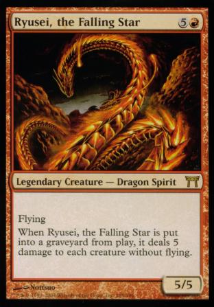 When Ryusei, the Falling Star is put into a graveyard from play, it deals 5 damage to each creature without flying.