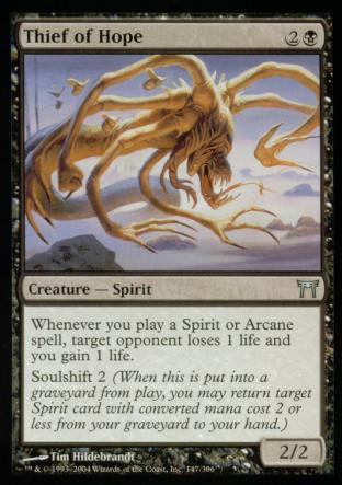 Whenever you play a Spirit or Arcane spell, target opponent loses 1 life and you gain 1 life.