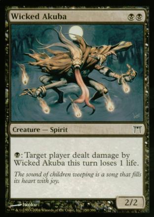 [B]: Target player dealt damage by Wicked Akuba this turn loses 1 life.